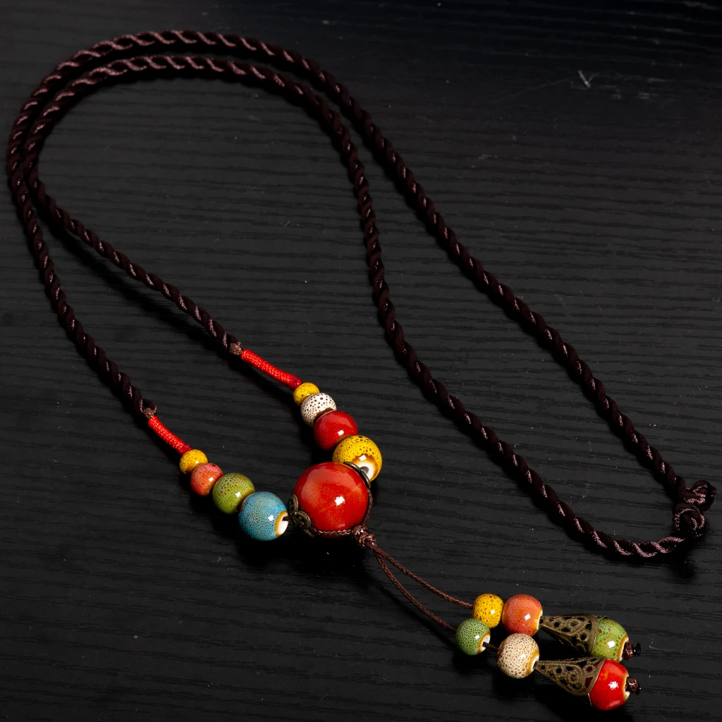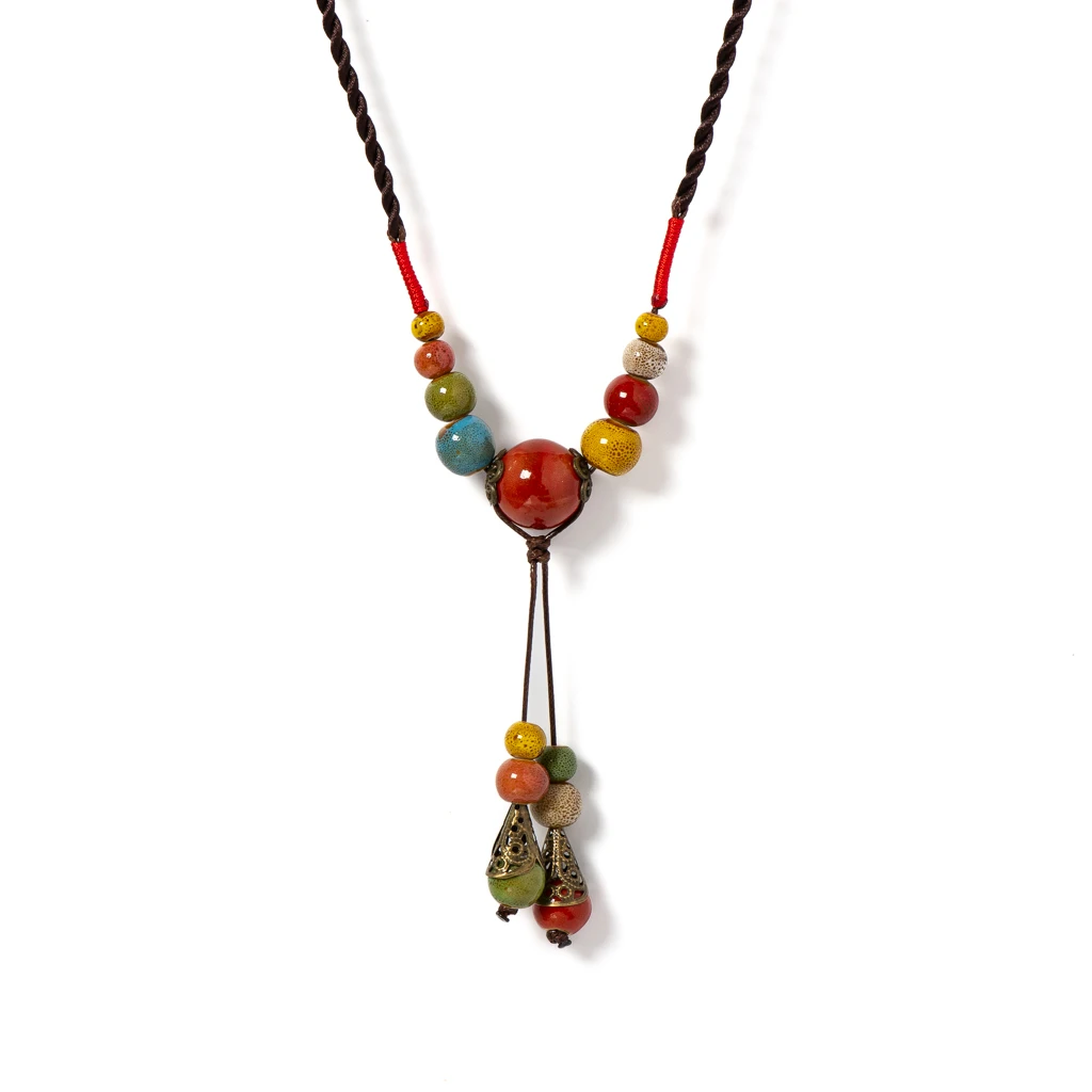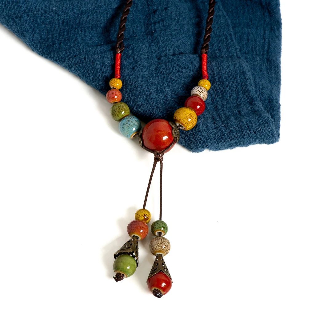 Colorful Ceramic Beaded Necklace for Women Adjustable Long Ethnic Pendant Jewelry Boho Chinese Retro Gift Accessories S001197