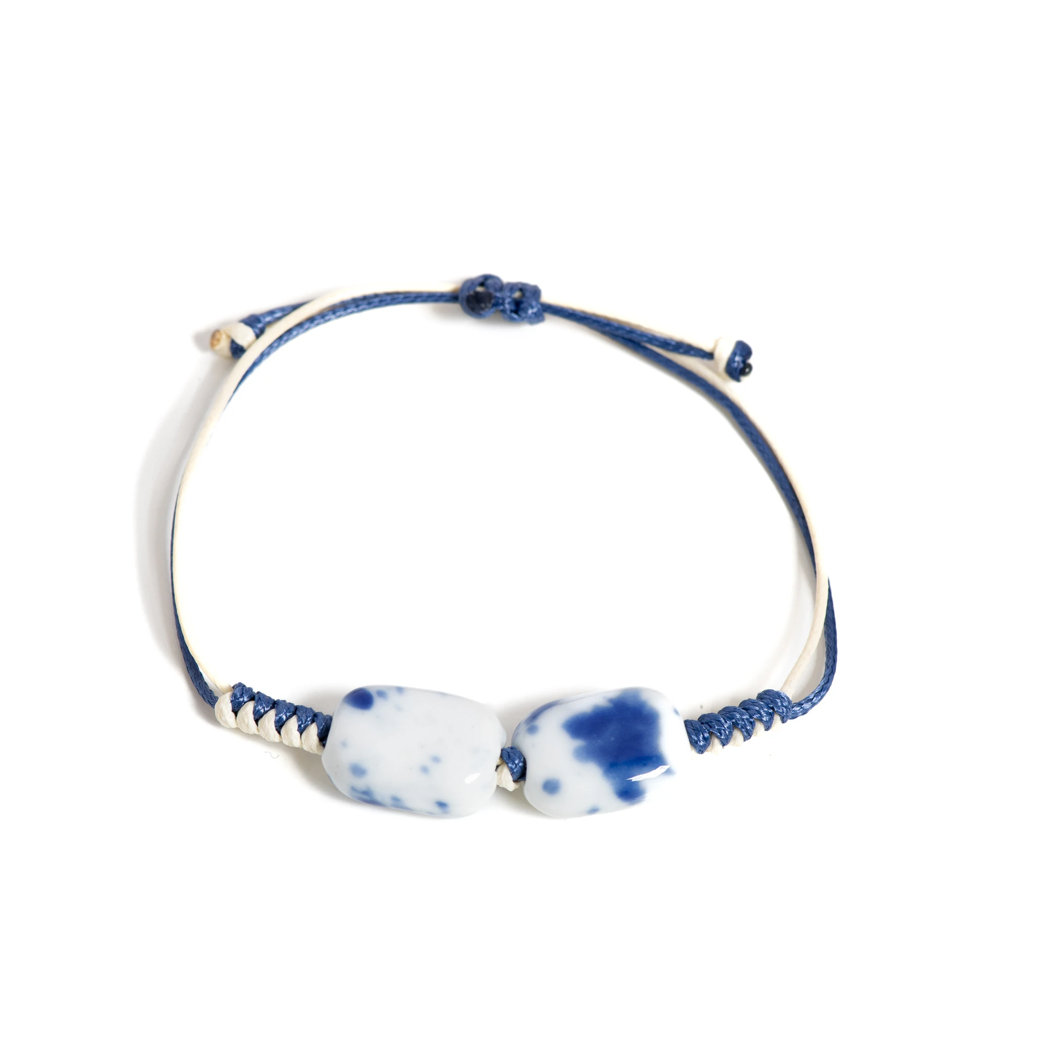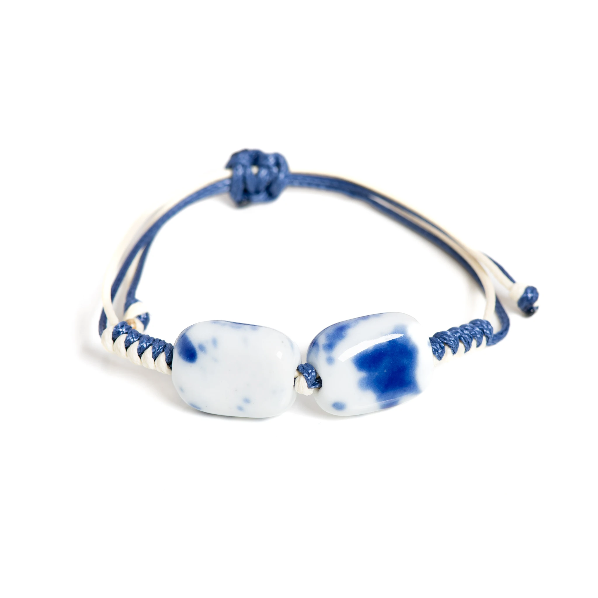 Inspired by traditional blue and white porcelain art, this handcrafted ceramic bracelet blends timeless elegance with bohemian craftsmanship. Featuring two beautifully glazed ceramic beads (1.8cm) strung on a handwoven wax cord, this adjustable bracelet (12cm-24cm) offers a comfortable fit for various wrist sizes. Lightweight and versatile, it’s perfect for daily wear, artistic styling, or as a unique handmade gift.