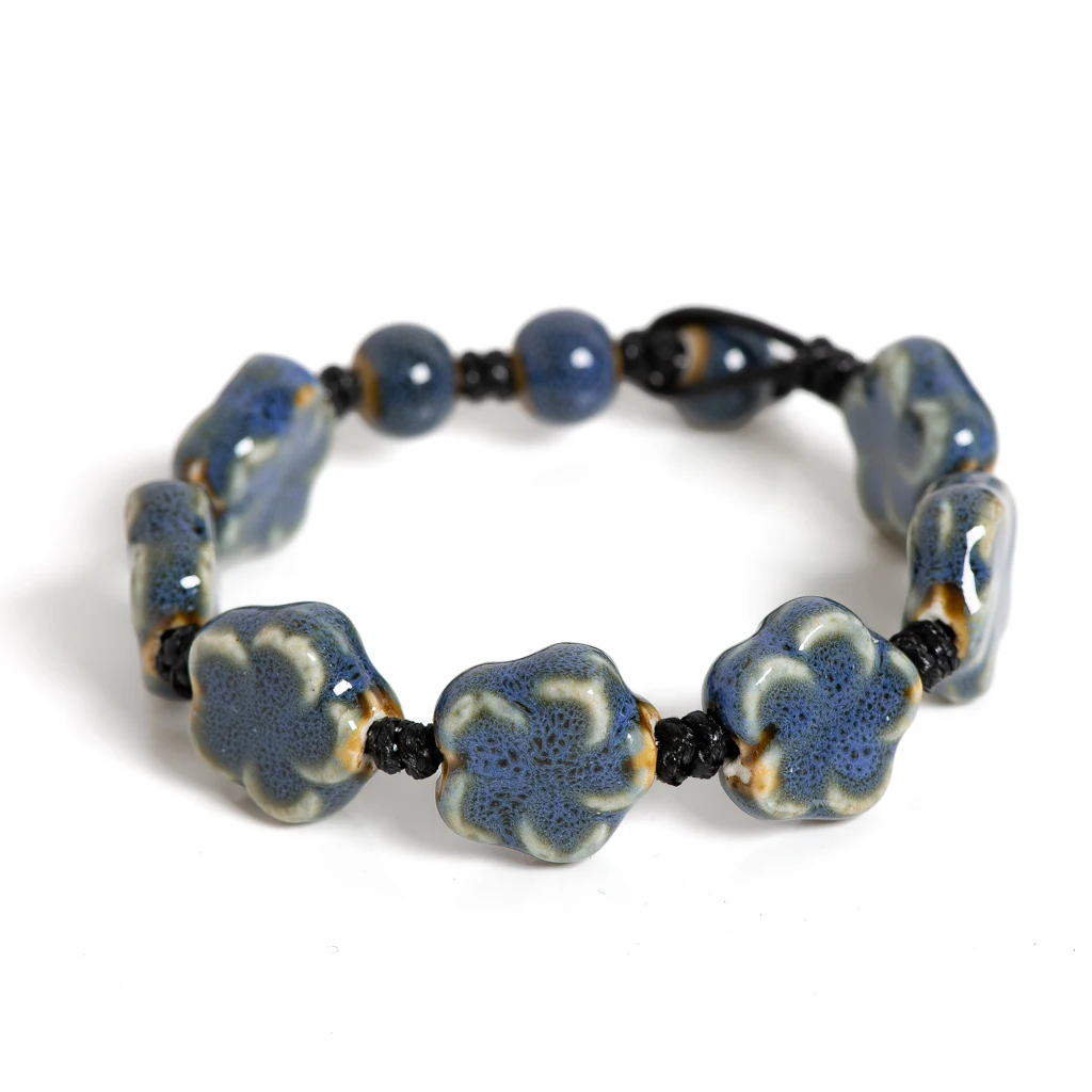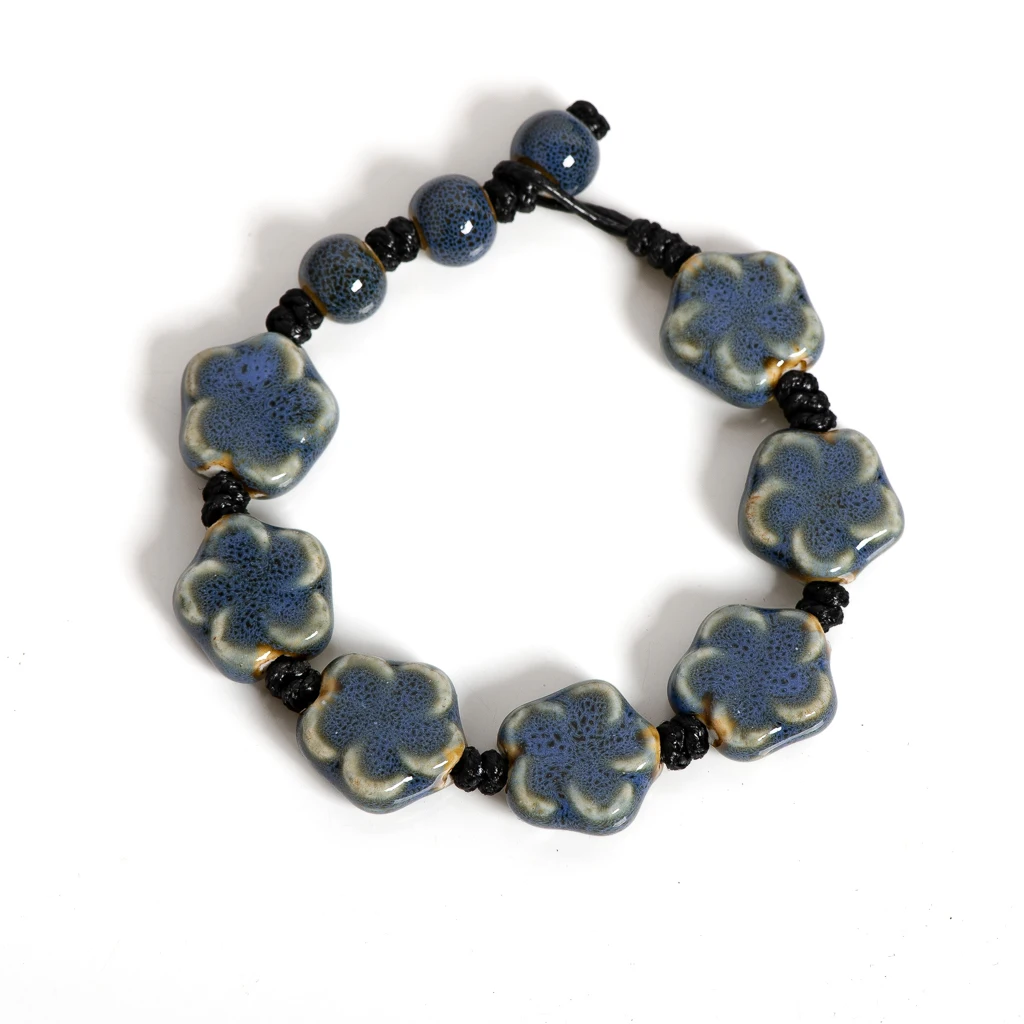 Handmade Ceramic Flower Bracelet 16–18cm Adjustable Cord Jewelry with Pink or Purple Glazed Beads for DIY Boho Style S02-057 S02-058