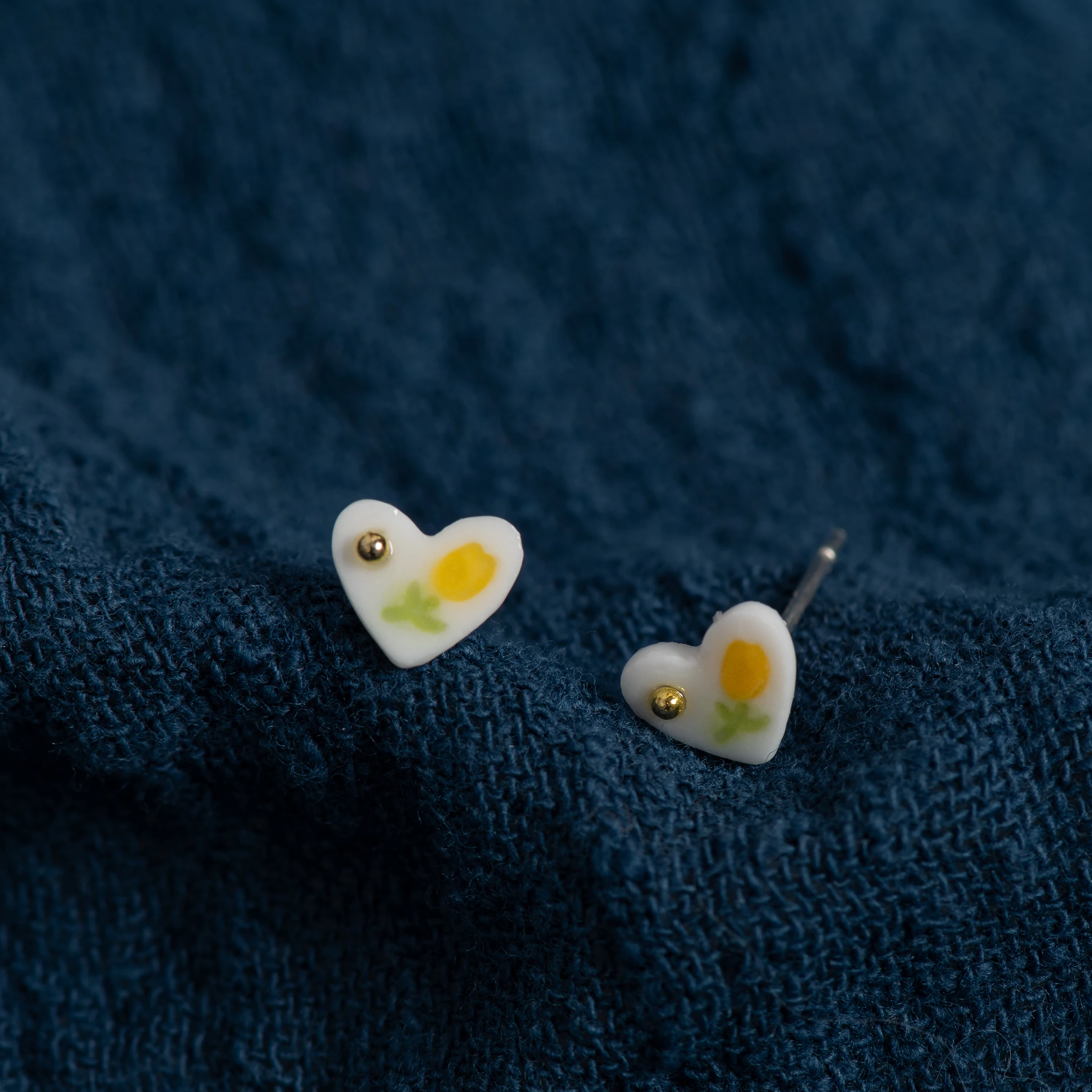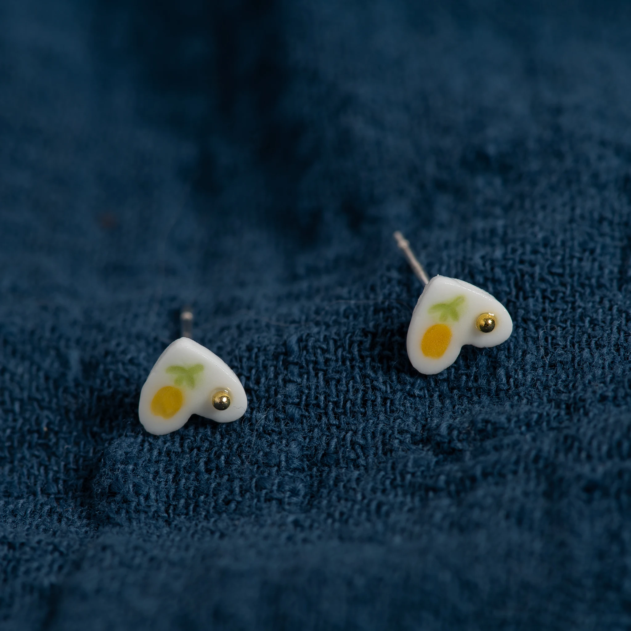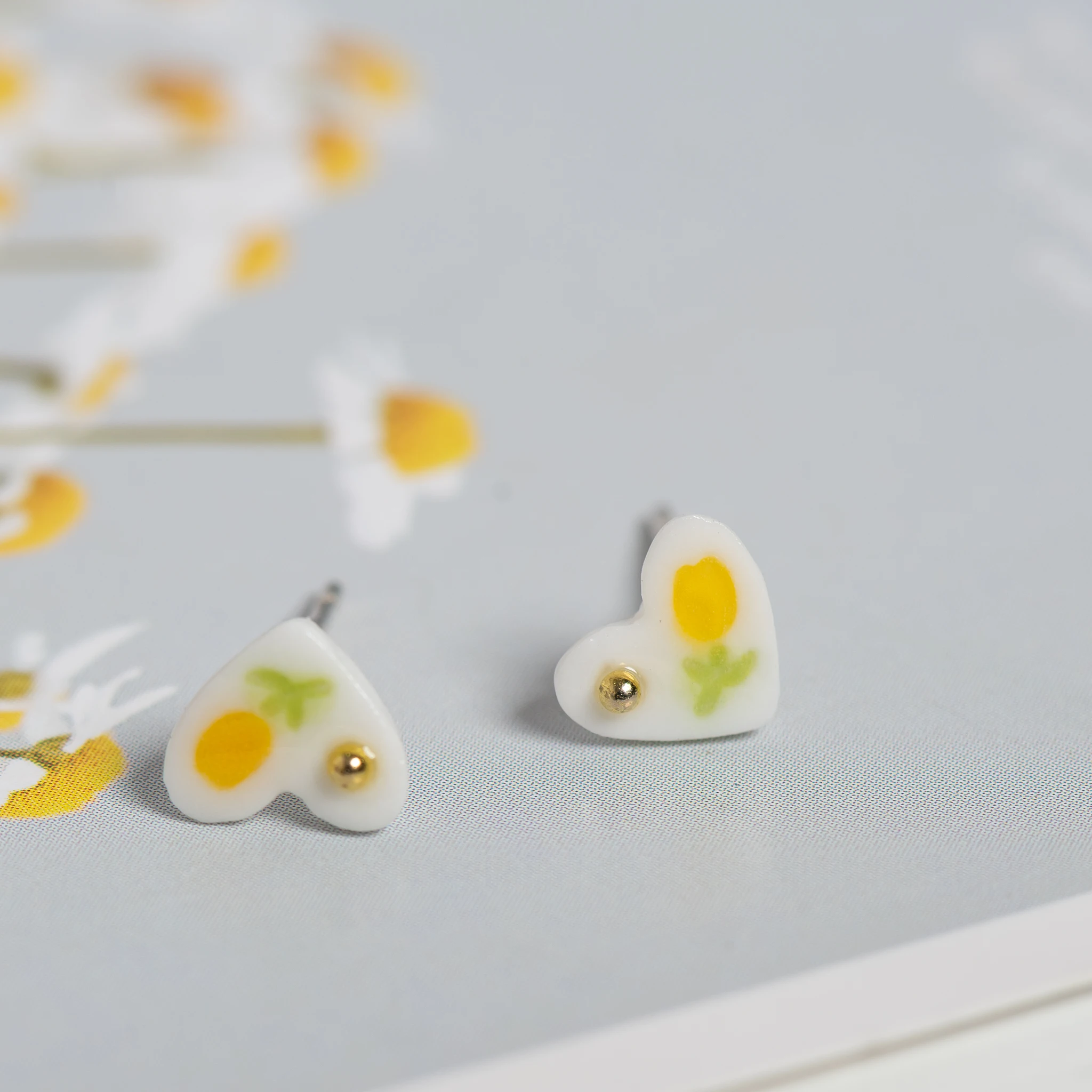 Handmade Ceramic Heart Stud Earrings Delicate White & Gold Accents Minimalist Artisan Jewelry for Women S001195