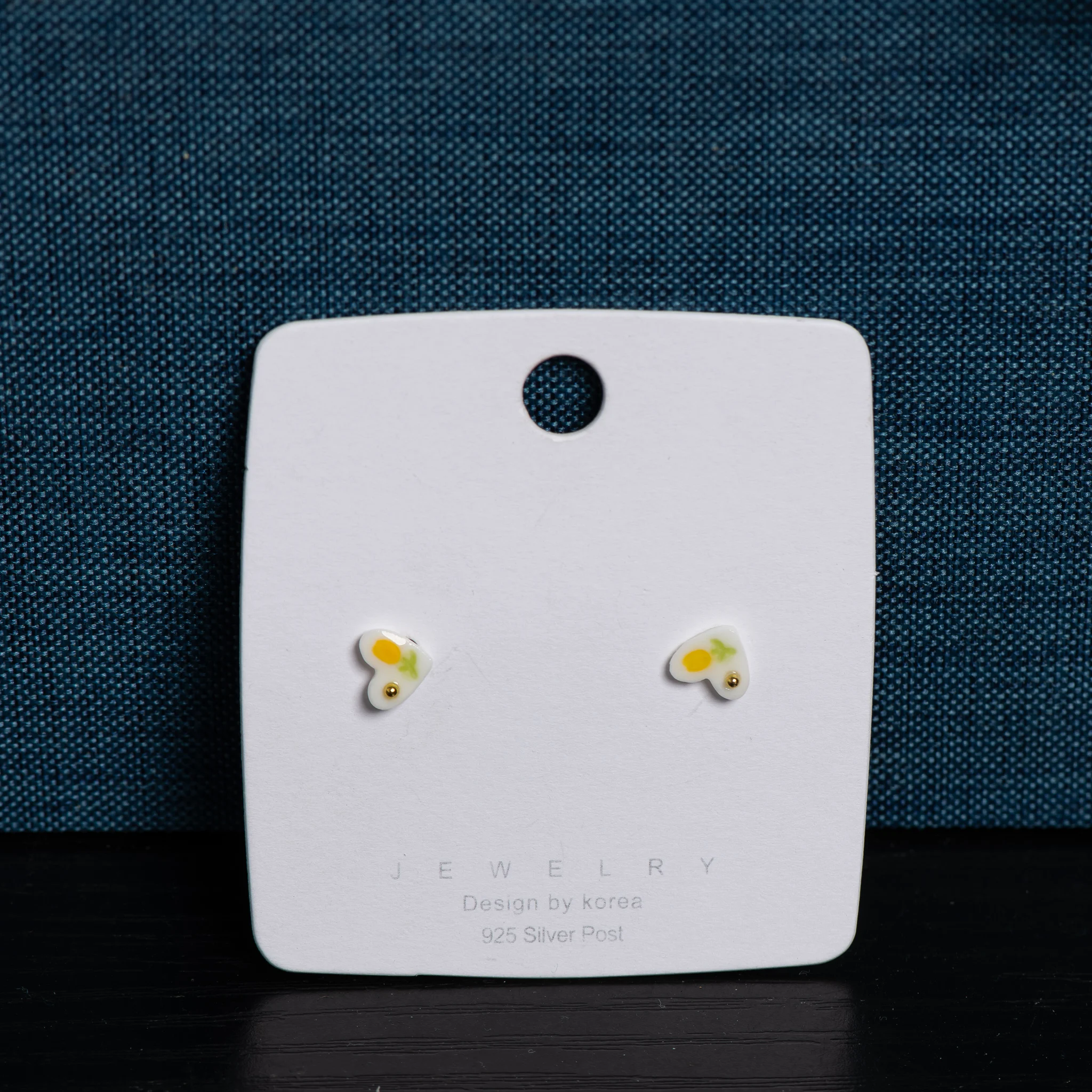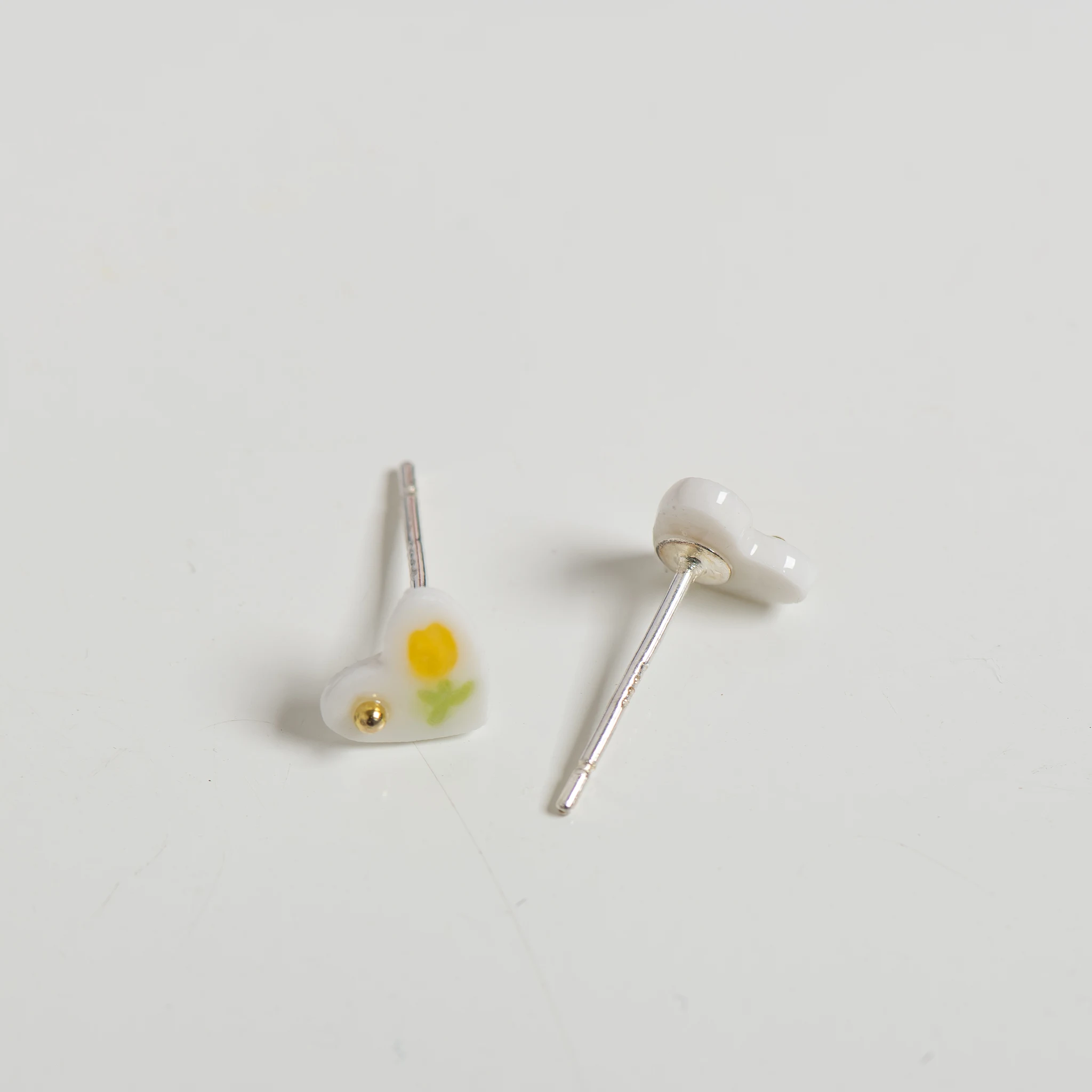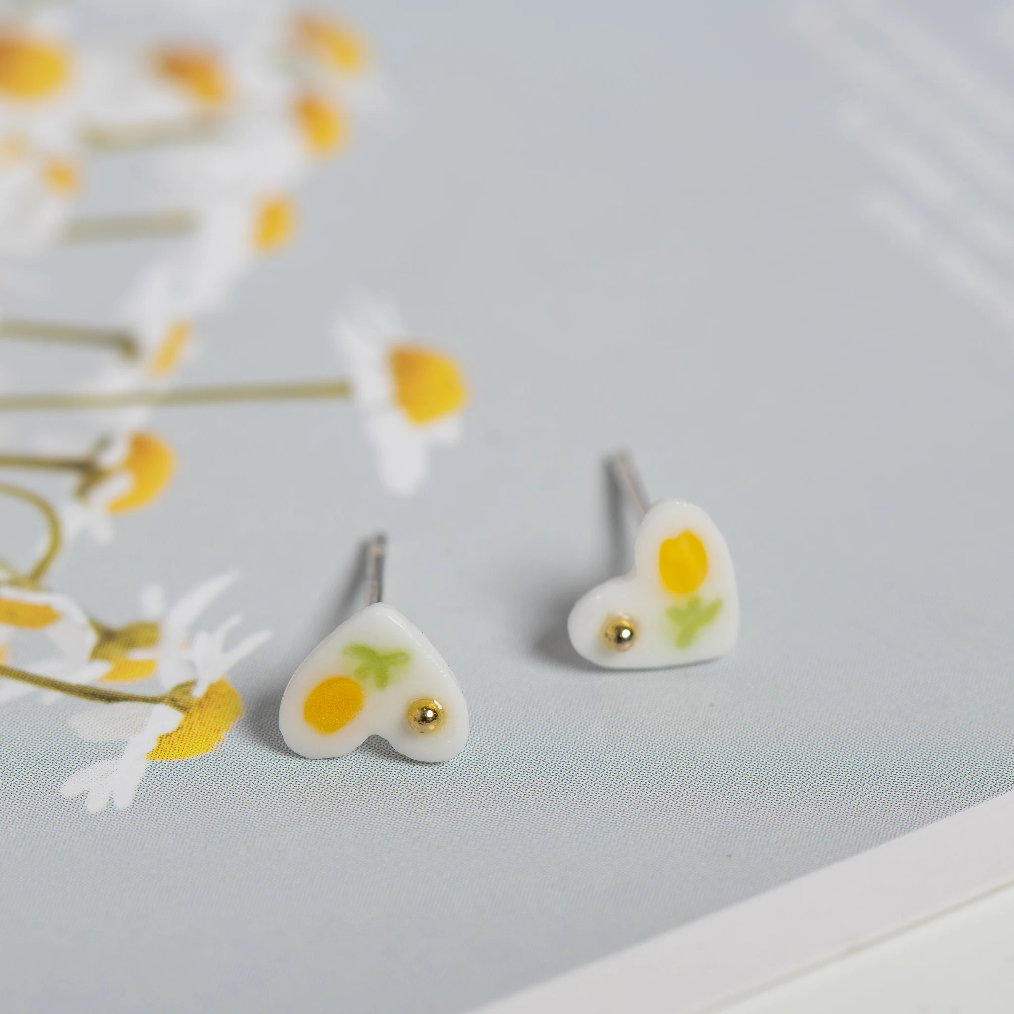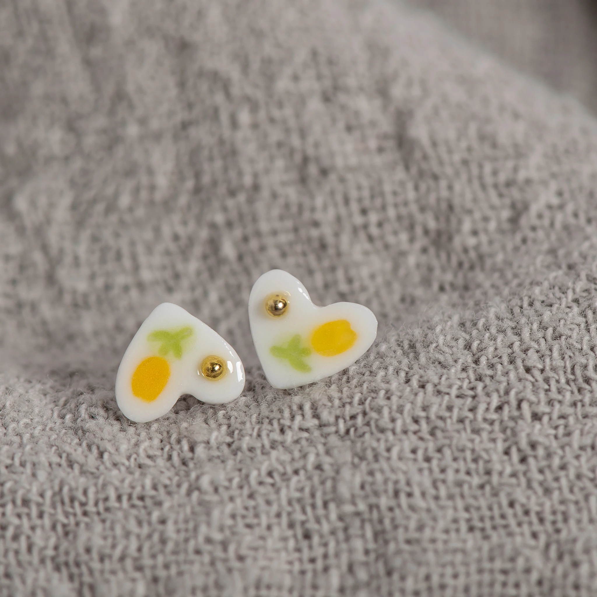 Handmade Ceramic Heart Stud Earrings Delicate White & Gold Accents Minimalist Artisan Jewelry for Women S001195