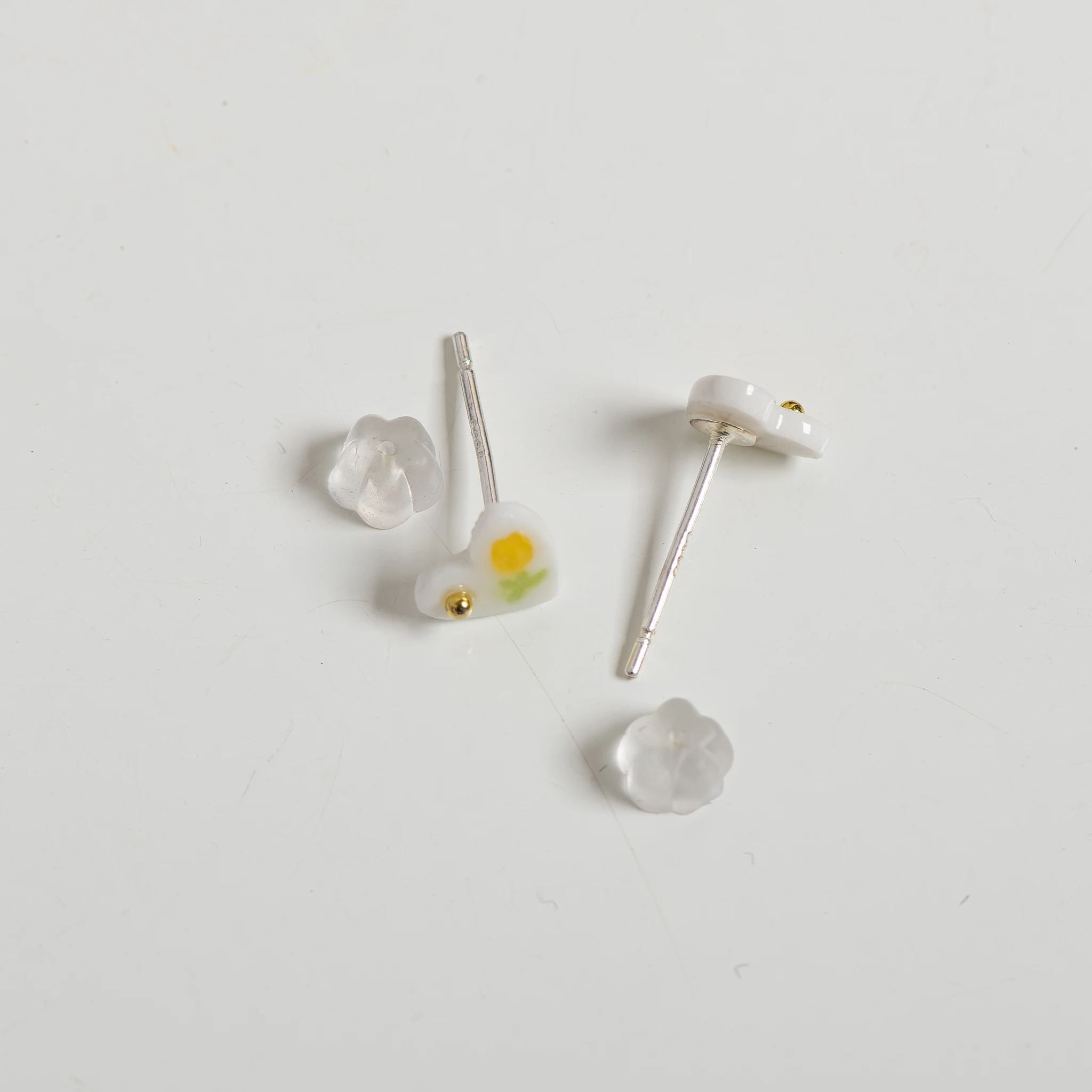 These charming handcrafted ceramic heart stud earrings feature a delicate white glaze accented with subtle gold details, creating an elegant and minimalist look. Measuring 6x7x2mm with a comfortable 12mm wear size, these lightweight earrings (3g including packaging) are perfect for everyday wear or special occasions. Their dainty design makes them a beautiful accessory for those who appreciate artisanal jewelry or a thoughtful gift for someone special.