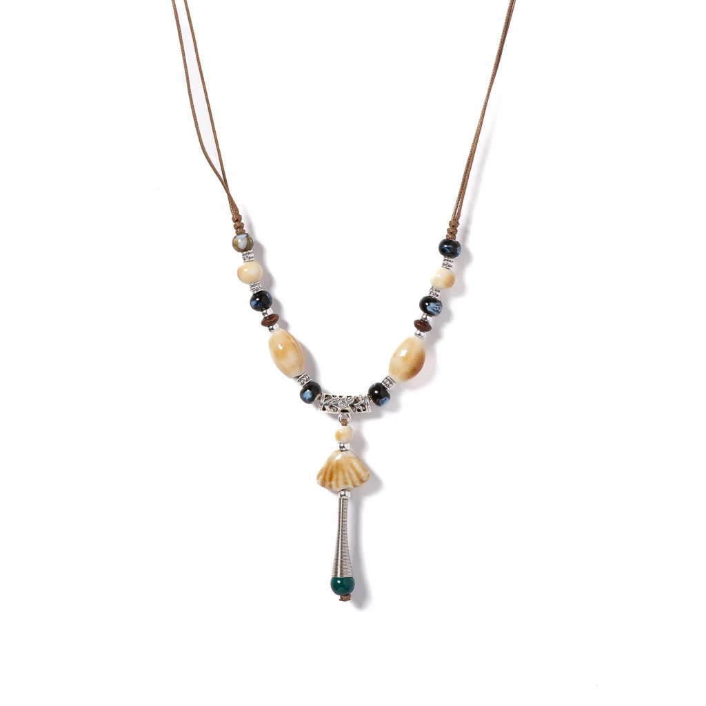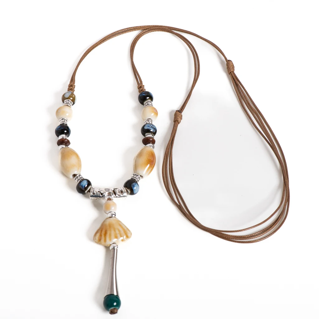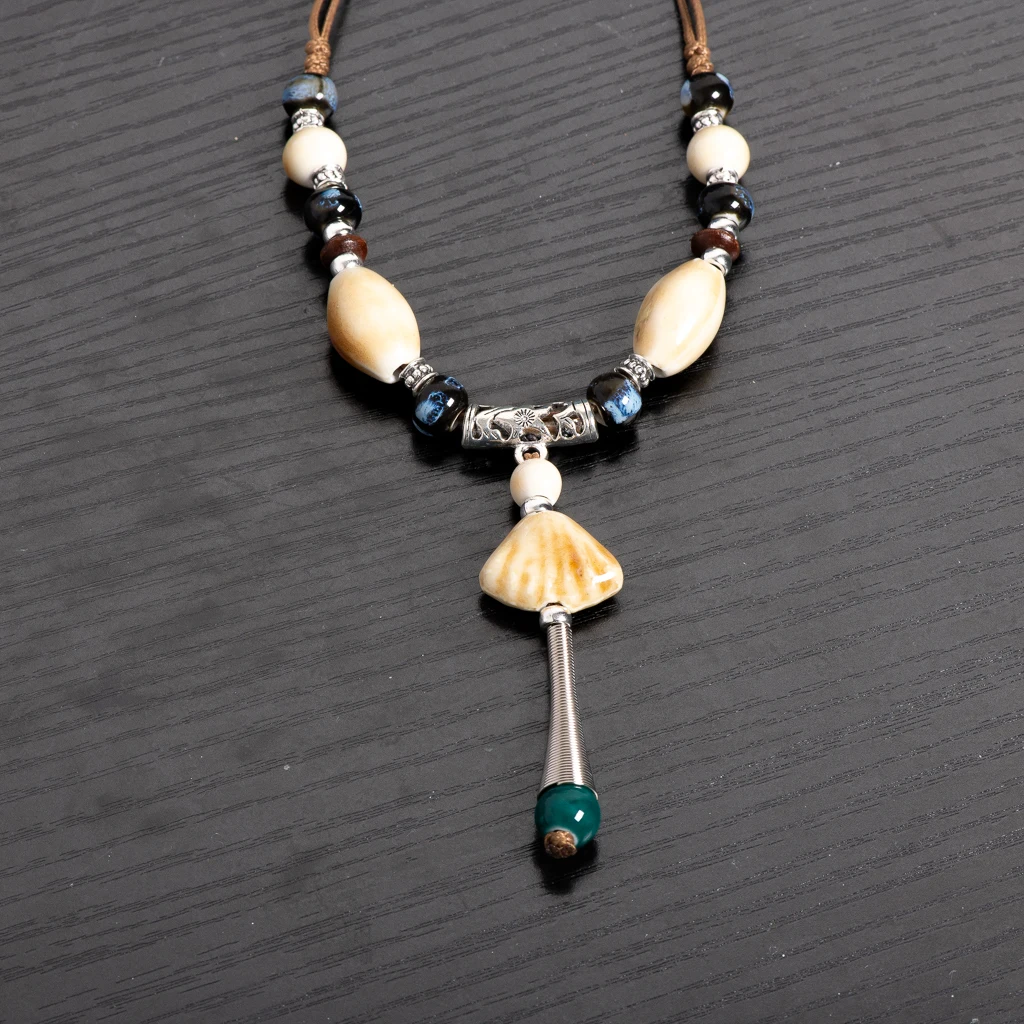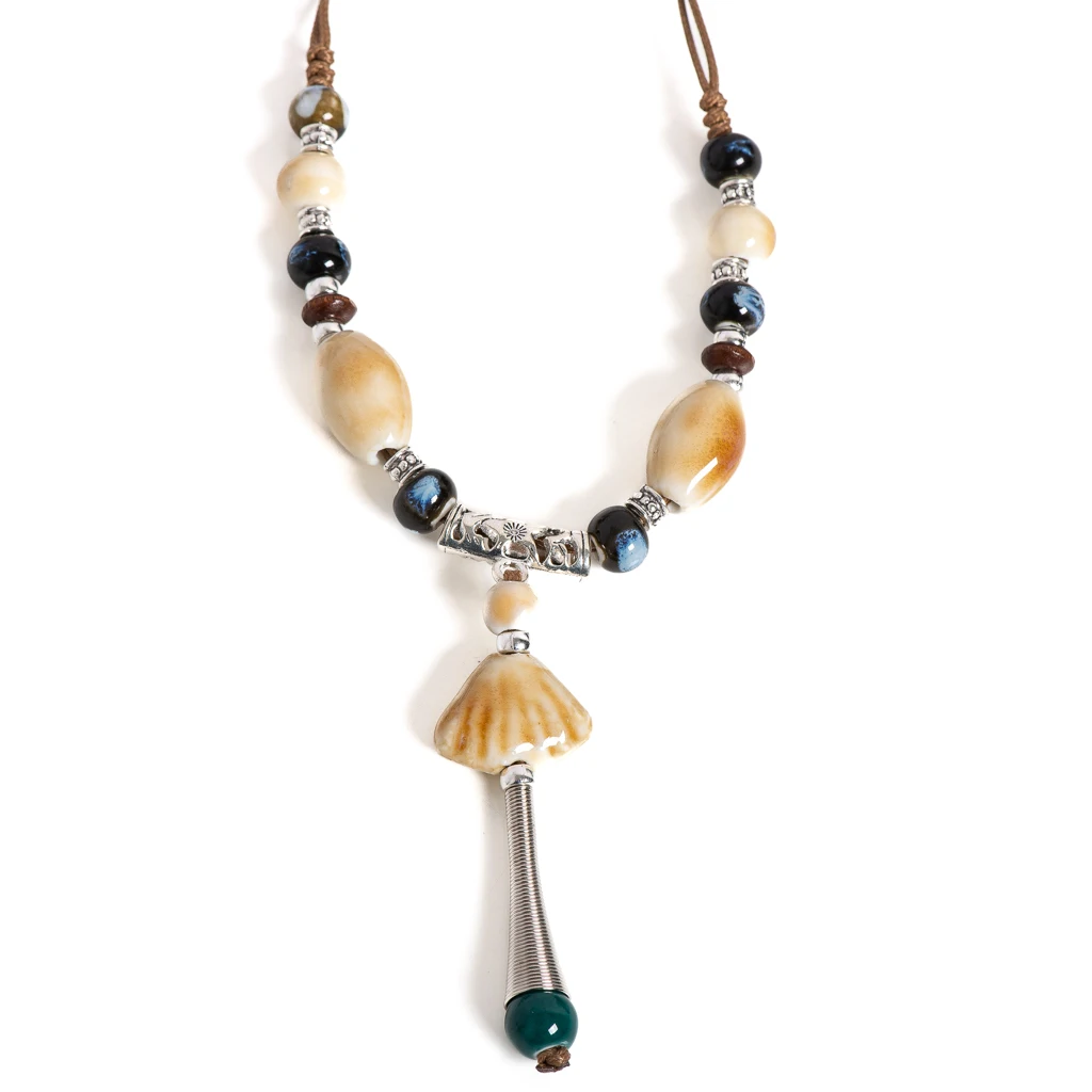 Handmade Ocean-Inspired Ceramic Necklace Adjustable Boho Ethnic Jewelry Seashell Pendant Long Elegant Statement Necklace for Women S02-055