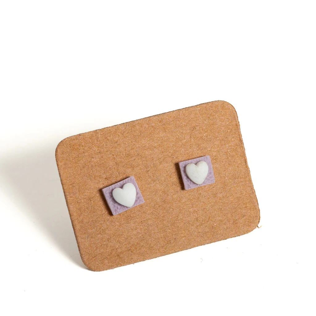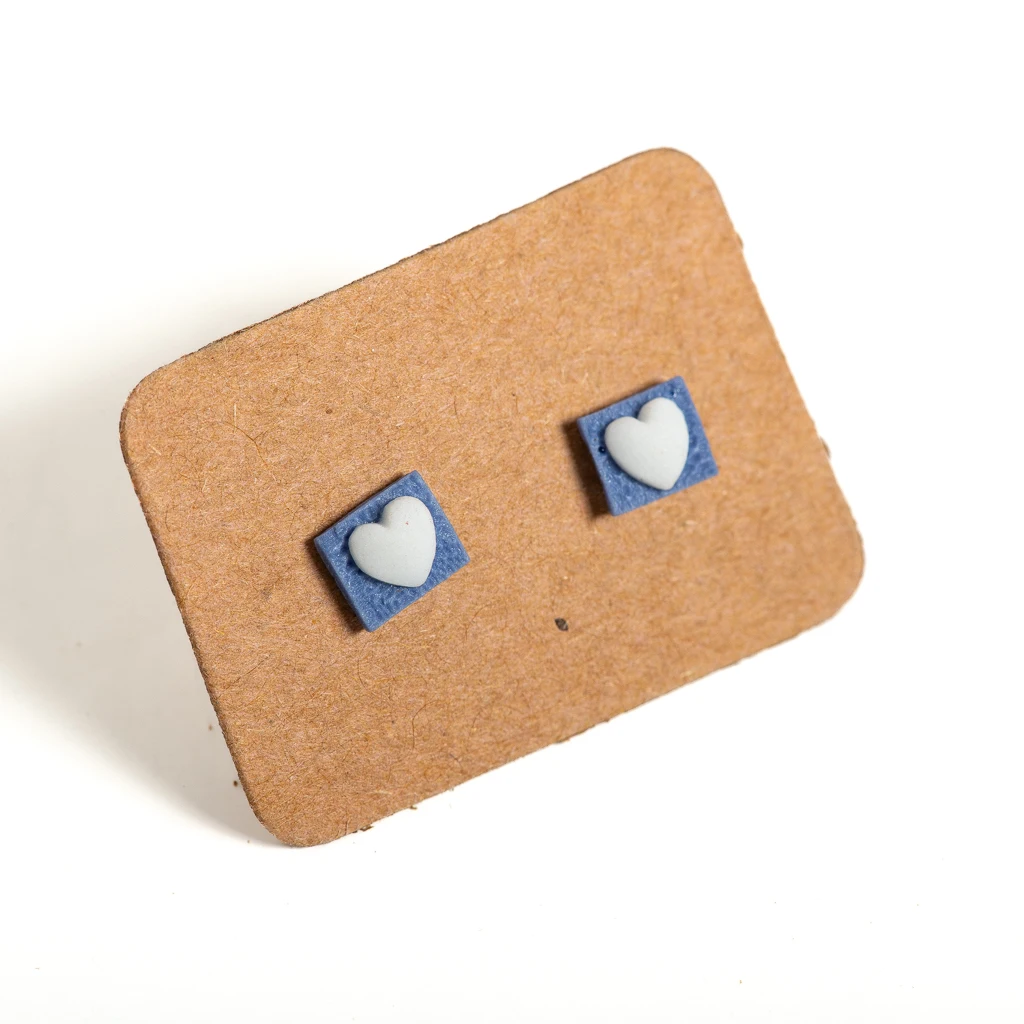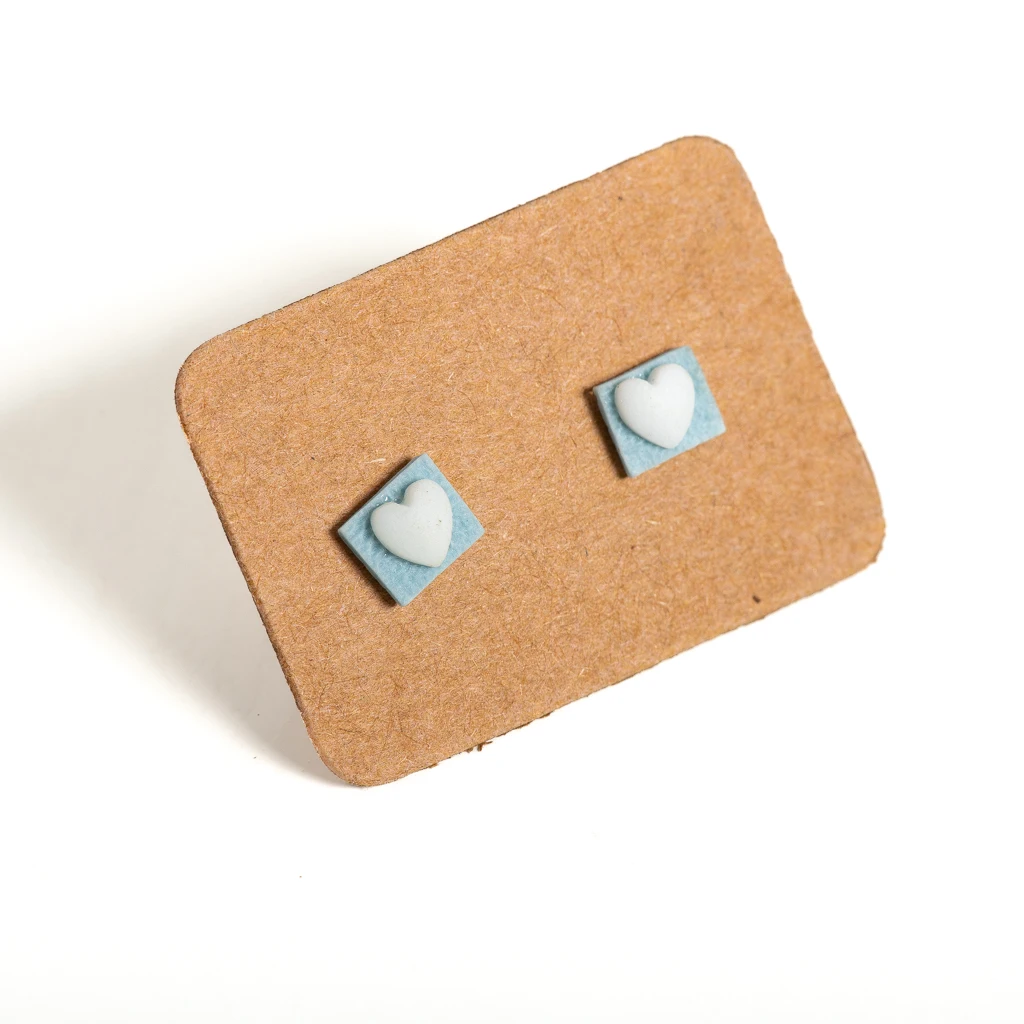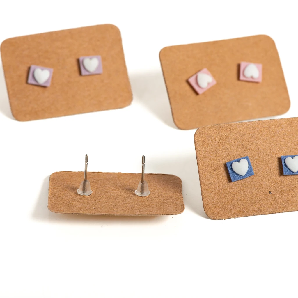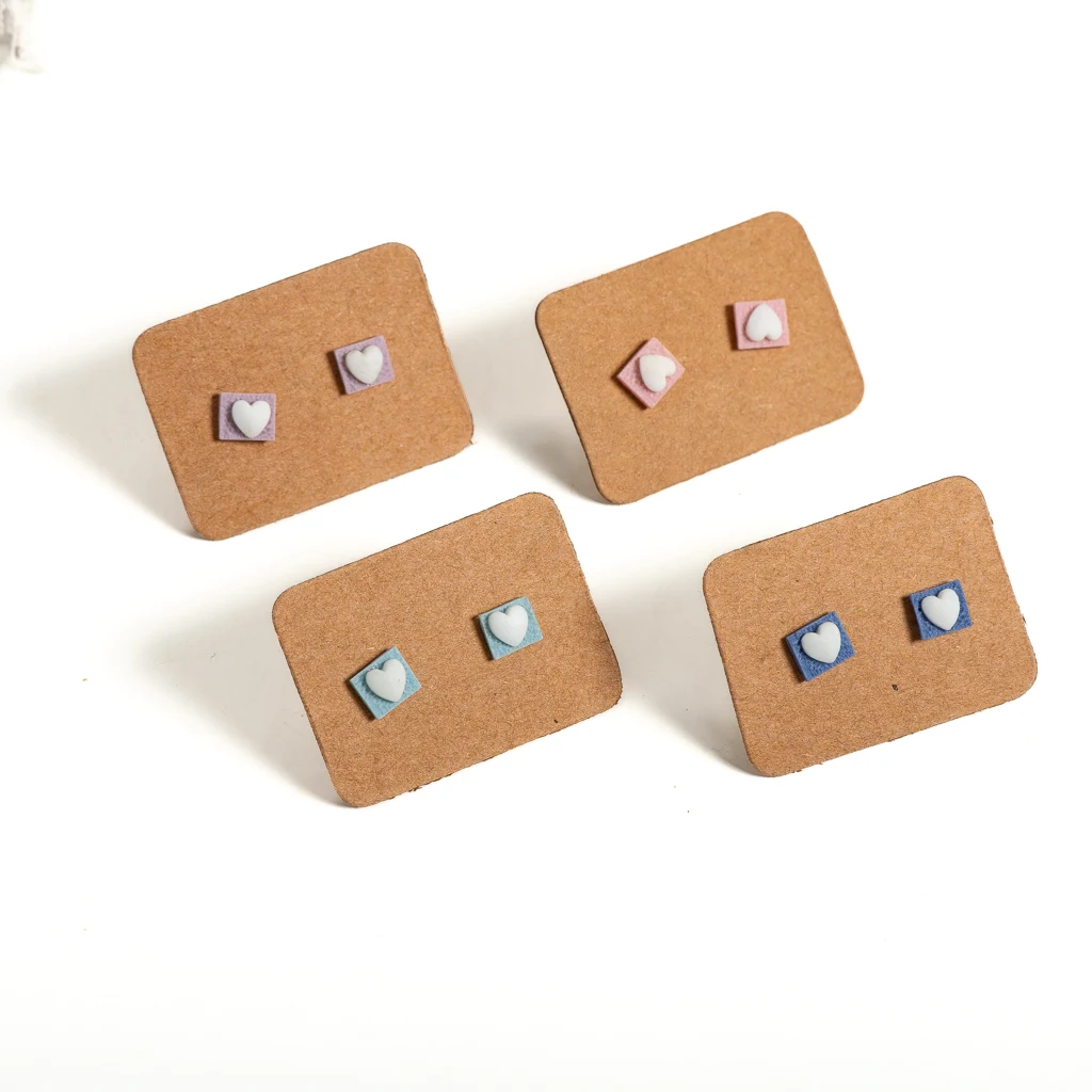 Handmade Square Heart Stud Earrings for Women Minimalist Cute Clay Jewelry Lightweight Daily Accessories Gift for Girls Teens S001203